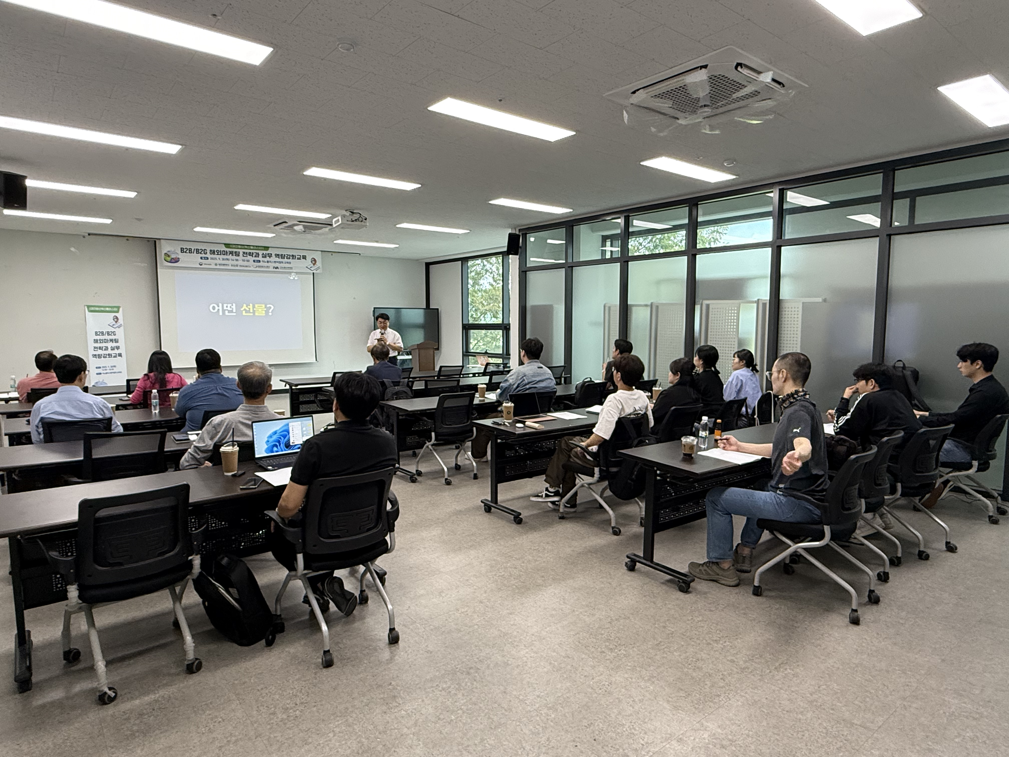 이날 교육에서는 글로벌 비즈니스 환경과 시장분석, 고객발굴과 바잉센터 분석, 해외마케팅 실행전략 등의 이야기를 나누는 시간을 가졌습니다.