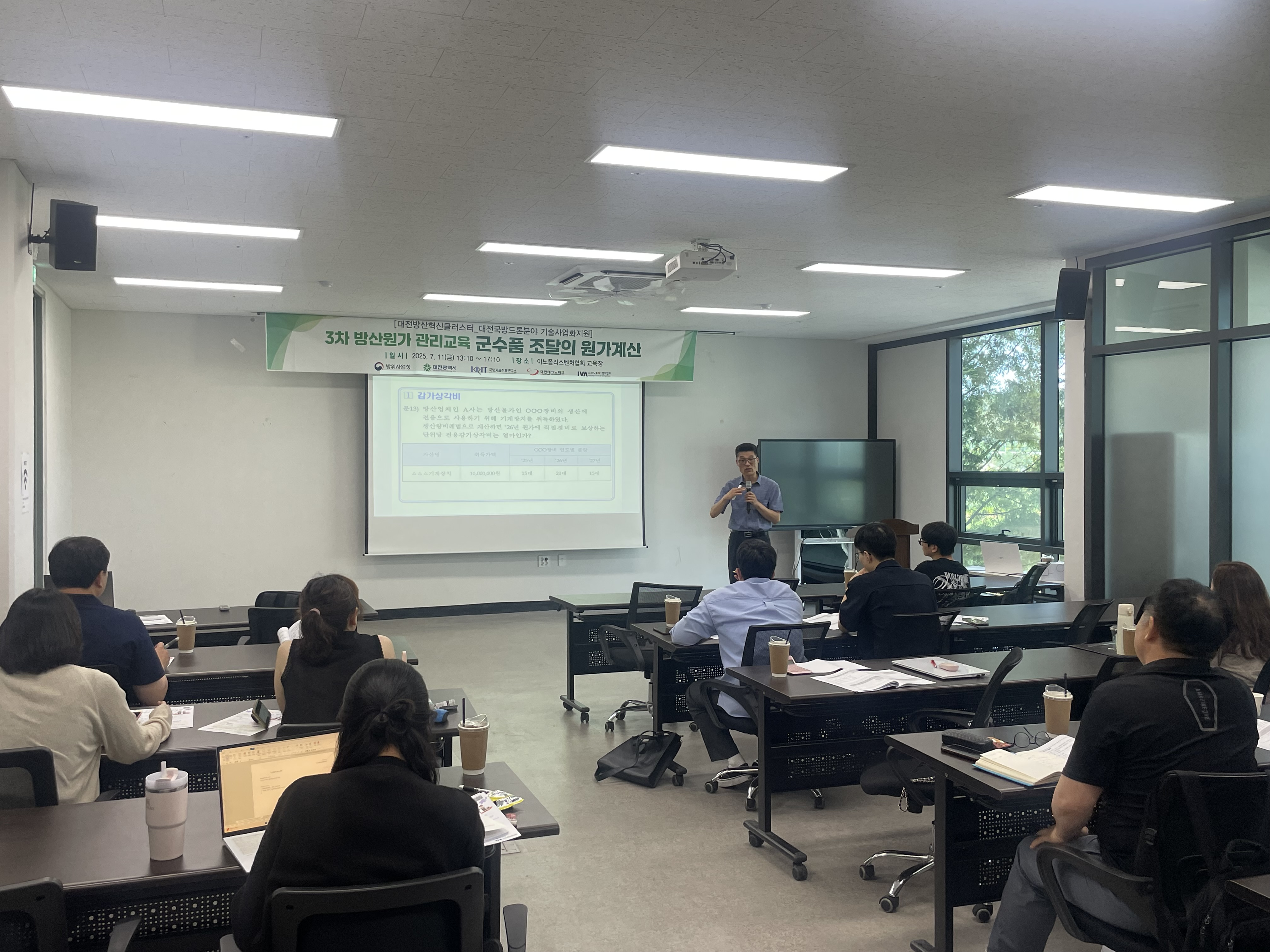 지난 7월 11일(금), 이노폴리스벤처협회 교육장에서 방산원가관리 역량강화교육을 개최하였습니다.